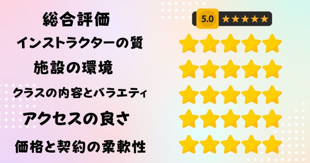 近隣のピラティススタジオとの口コミ・評判を比較して、あなたに最適なピラティススタジオ選びの参考になれば幸いです。