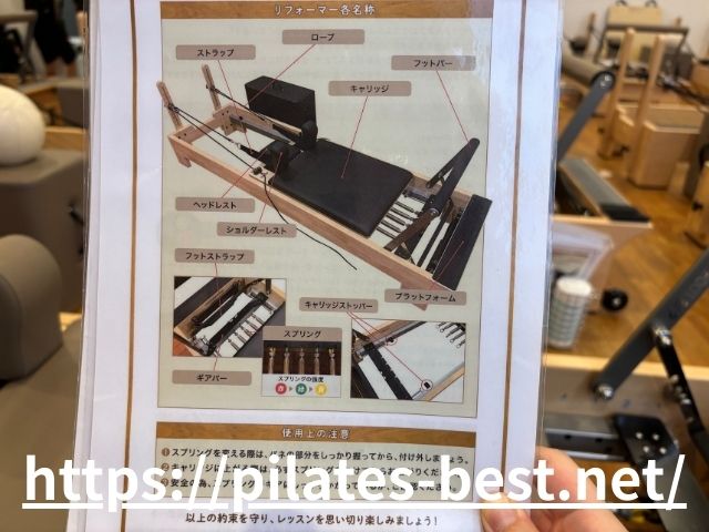 マシン一台一台に解説書がありますのでレッスンが始まる前に目を通しておくと理解が早いです☆