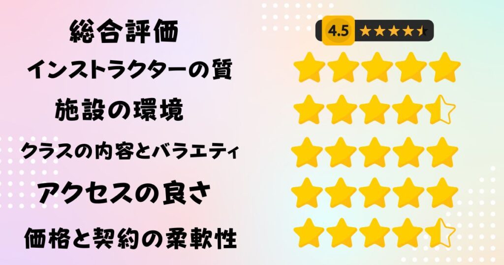 近隣のピラティススタジオとの口コミ・評判を比較して、あなたに最適なピラティススタジオ選びの参考になれば幸いです。